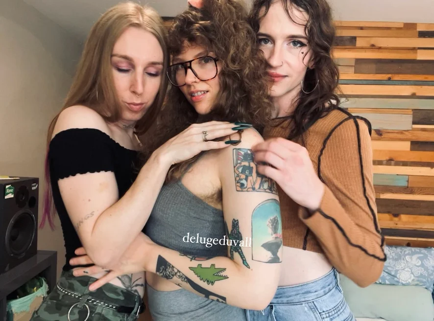 YES! I (Deluge, glasses) am nonbinary. I take testosterone and have a pussy and a big clit. My girlfriends Star (blonde) and Aura (dark hair) are both trans women.