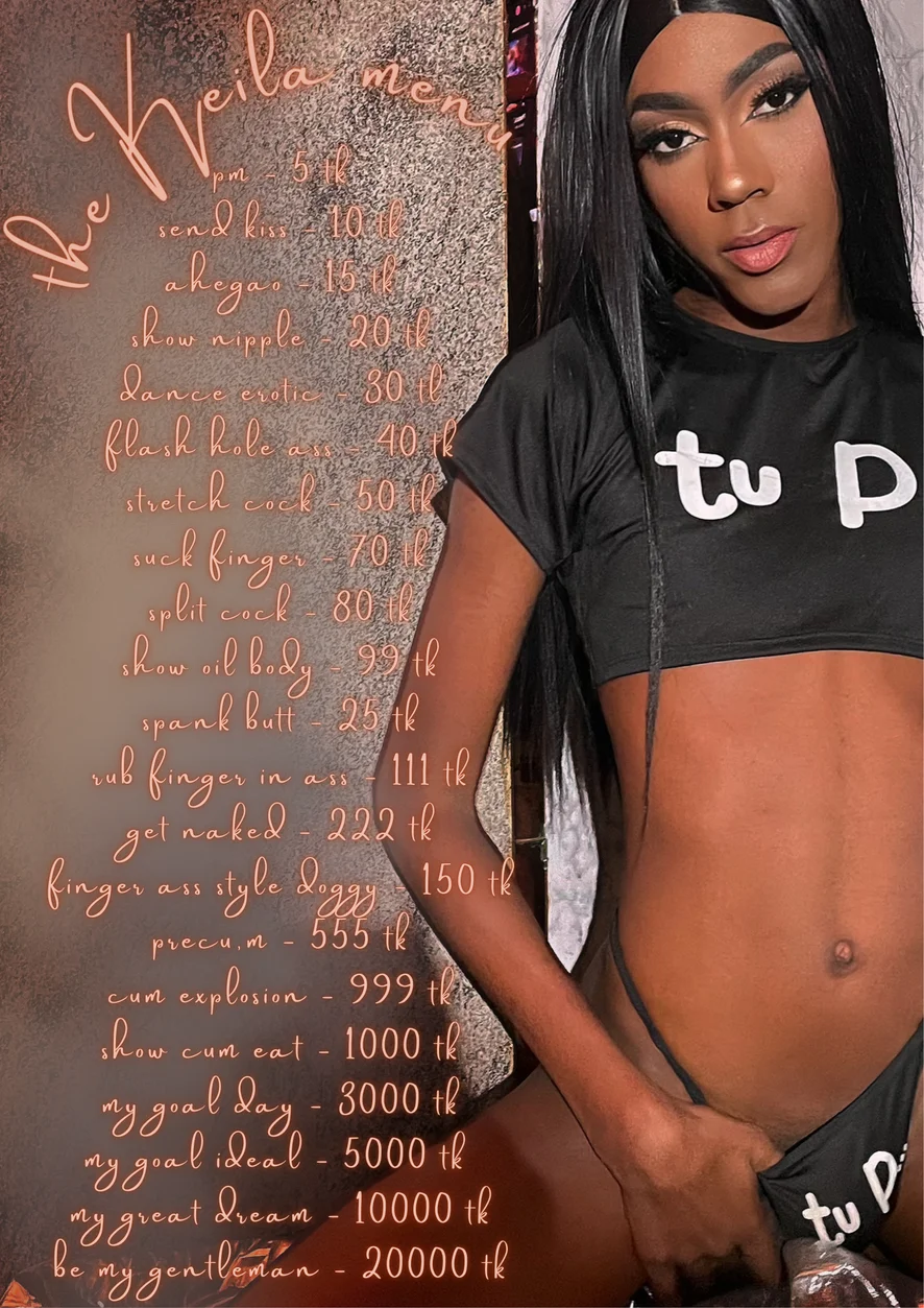 Odzadu, Ahegao, Vonku, Anál, Plieskanie po zadku, Erotický tanec, Zárez, Prstovanie, Sprosté reči, Striptíz, Ejakulácia, Masáž, Masturbácia, Hodnotenie vtáka, Výstrek, Koža, Zo zadku do úst, Výstrek na tvár, Roleplay, Hračky na bradavky, Dusenie, Olejová šou, Prehĺtanie, Twerk, CEI, Dildo alebo vibrátor, Foot fetiš, SPH, Ponižovanie, Análne hračky, Sexuálne hračky, Podpätky, Jazdenie, Orgazmus, Sedenie na tvári
