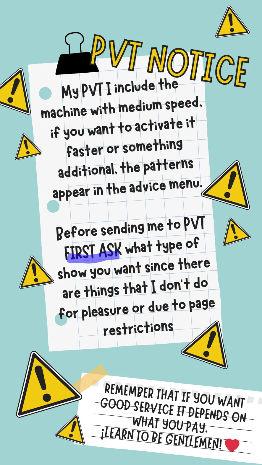 I recommend you read before entering PVT, to avoid bad ratings and comments, Thanks!